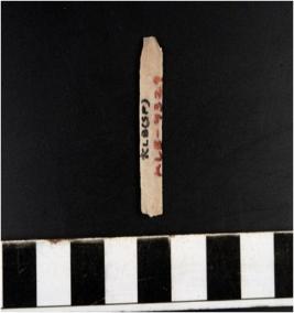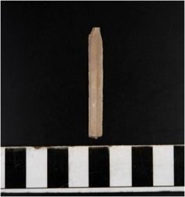 | Description / विवरण | A chert blade with double ridge on dorsal side, trapezoid cross-section and sharp cutting edge. |