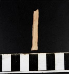 | Description / विवरण | A chert blade with double ridge on dorsal side, trapezoid cross section and use-wear marks on cutting edge. |