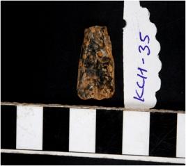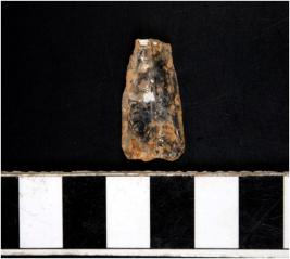 | Description / विवरण | A quartz flake with rough cutting edges. |