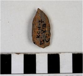 | Description / विवरण | A stone flake with rough cutting edges and pointed one end. |