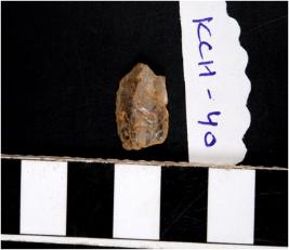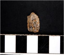 | Description / विवरण | A quartz flake with rough cutting edges. |