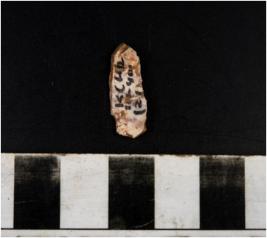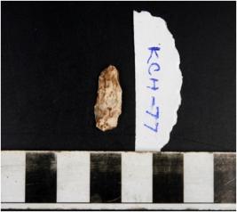 | Description / विवरण | A slightly curved blade microlithic tool having ridge on one side with fine finished sharp cutting edges on both side. |