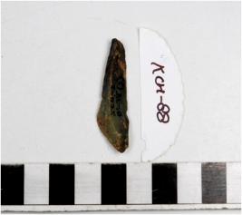 | Description / विवरण | A backed single side blade microlithic tool having single ridge on the dorsal surface and bulb purcussion on the ventral side, sharp edges on right side with oblique flaking on the both side of ridge. |