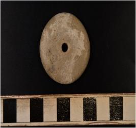 | Description / विवरण | A circular shaped stone spindle whorl having perforation of smooth surface. |