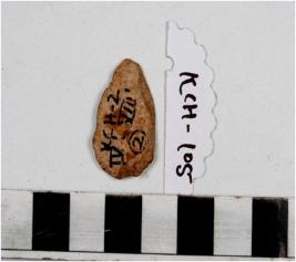 | Description / विवरण | A leaf shaped flake, having right side flaking flat upper surface, irregular edges. |