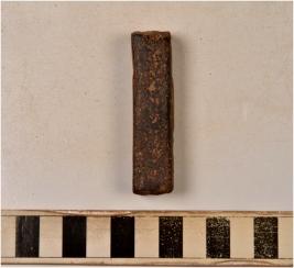 | Description / विवरण | A fragment of iron object with square in section of rough surface. |