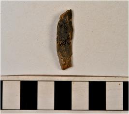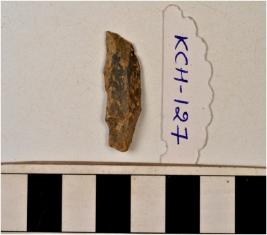 | Description / विवरण | A stone blade with single ridge on dorsal side, triangular cross section, sharp cutting edges and painted at one end. |