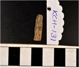 | Description / विवरण | A stone blade with single ridge on dorsal side, triangular cross section, sharp cutting edges. |