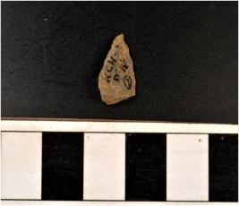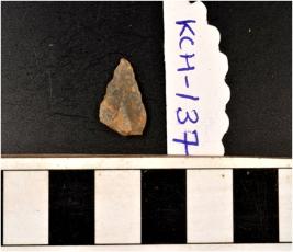 | Description / विवरण | A stone blade with single ridge on dorsal side, triangular cross section, sharp cutting edges and painted at one end. |