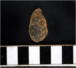 | Description / विवरण | A scraper microlithic tool made on flake rounded shape one side is retouched in order to form straight scraping edge. |