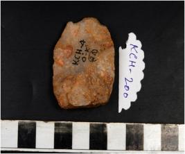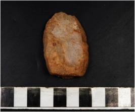 | Description / विवरण | A core from which flaking on the upper sides having horizontal flaking has been done as well as on the lower sides cortex is on the surface. |