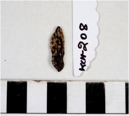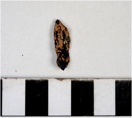 | Description / विवरण | A stone blade with single ridge on dorsal side, triangular cross section and blunt cutting edges. |