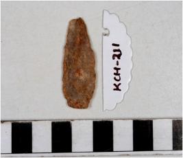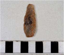 | Description / विवरण | A stone blade with single ridge on dorsal side bulb on ventral side triangular cross section and sharp cutting edges. |