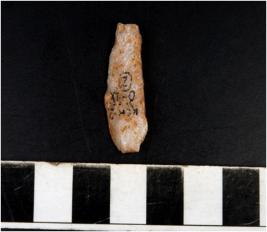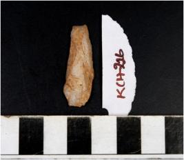 | Description / विवरण | An unfinished stone blade with single ridge on dorsal side, triangular cross section and blunt cutting edges. |