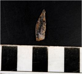 | Description / विवरण | A stone blade with single ridge on dorsal side, triangular cross section and sharp cutting edges. |