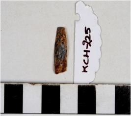 | Description / विवरण | An unfinished stone blade with single ridge on dorsal side, triangular cross section and sharp cutting edges. |