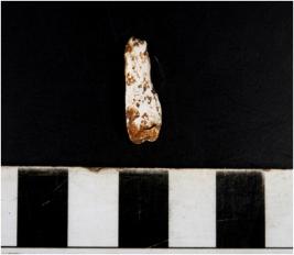 | Description / विवरण | A stone blade with double ridge on dorsal side and bulb on ventral side, trapezoid cross section and blunt cutting edges. |