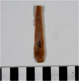 | Description / विवरण | A chert blade with ridge on dorsal side sharp cutting edges and bulb at the ventral side. |