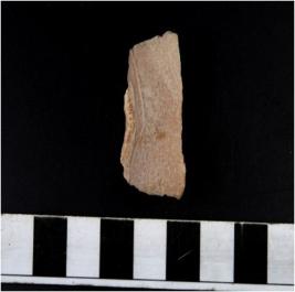 | Description / विवरण | A chert blade with ridge on dorsal side triangular in section and sharp cutting edges. |
