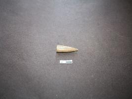 | Description / विवरण | Bone arrow head, tanged but tang is broken, vertical depression on one surface, point is also broken slightly. |