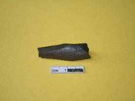 | Description / विवरण | Bone fragment of arrow head cherred , broken point and tang part, roughly finished black. |
