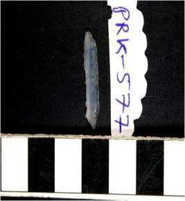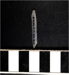 | Description / विवरण | A chalcedony blade with single ridge on dorsal side, triangular cross section and use wear marks on cutting edge. |