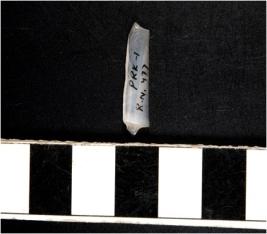 | Description / विवरण | A chalcedony blade with double ridge on dorsal side, trapezoid cross section and sharp cutting edges. |