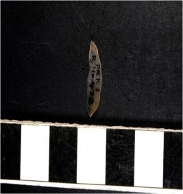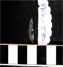 | Description / विवरण | A chalcedony blade with single ridge on dorsal side, triangular cross section, sharp cutting edges and pointed at one end. |