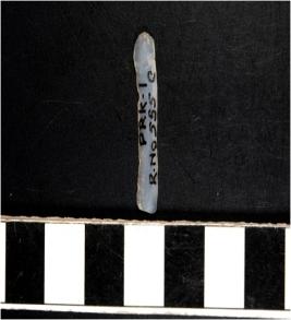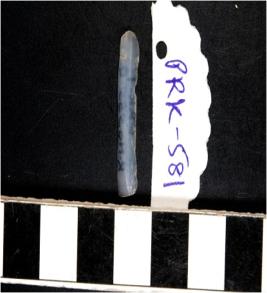 | Description / विवरण | A chalcedony blade with double ridge on dorsal side, trapezoid cross section and sharp cutting edges. |