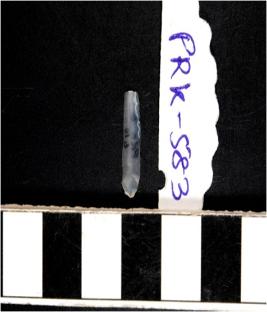 | Description / विवरण | A chalcedony blade with double ridge on dorsal side, trapezoid cross section and sharp cutting edges. |