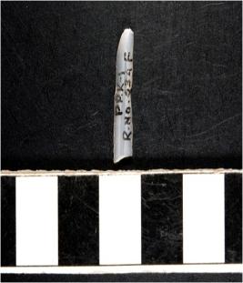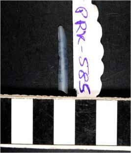 | Description / विवरण | A chalcedony blade with double ridge on dorsal side, trapezoid cross section, sharp cutting edges and pointed at one end. |