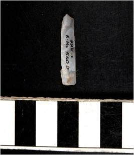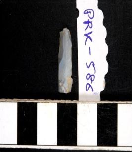 | Description / विवरण | A chalcedony blade with double ridge on dorsal side, trapezoid cross section, sharp cutting edges. |
