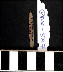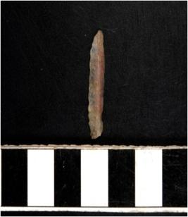 | Description / विवरण | A chalcedony blade with single ridge on dorsal side, triangular cross section, sharp cutting edges and pointed at one end. |