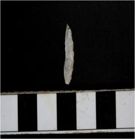 | Description / विवरण | A chert small crescent shaped lunate with blunt straight edge and a sharpened curved cutting edge. |