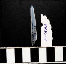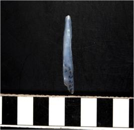 | Description / विवरण | A chalcedony blade with double ridge on dorsal side, trapezoid cross section and sharp cutting edges. |