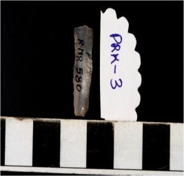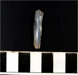 | Description / विवरण | A chalcedony blade with single ridge on dorsal side, triangular cross section and sharp cutting edges. |