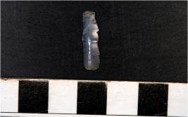 | Description / विवरण | A chalcedony blade with single ridge on dorsal side and bulb on ventral side, triangular cross section and sharp cutting edges. |