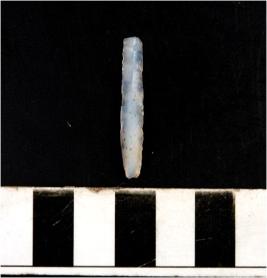 | Description / विवरण | A chalcedony blade with single ridge on dorsal side and bulb on ventral side, triangular cross section and sharp cutting edges. |