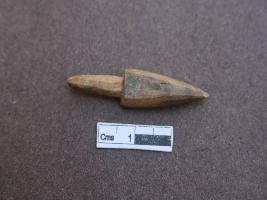 | Description / विवरण | Bone arrow head tanged , leaf shaped. |