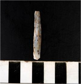 | Description / विवरण | A chert blade with single ridge on dorsal side, triangular cross section and sharp cutting edges. |
