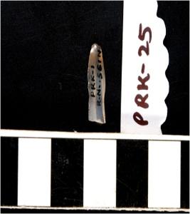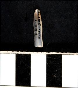 | Description / विवरण | A chalcedony blade with double ridge on dorsal side and bulb on ventral side, trapezoid cross section and sharp cutting edges. |
