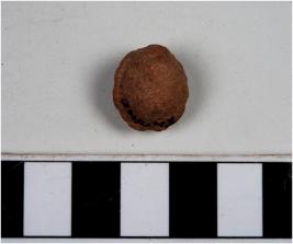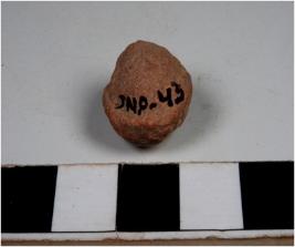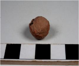 | Description / विवरण | A fragment of a terracotta ball of rough surface. |