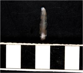 | Description / विवरण | A chalcedony blade with double ridge on dorsal side, trapezoid cross section and sharp cutting edges. |