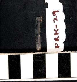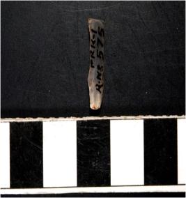 | Description / विवरण | A chalcedony blade with single ridge on dorsal side and bulb on ventral side, triangular cross section and sharp cutting edges. |