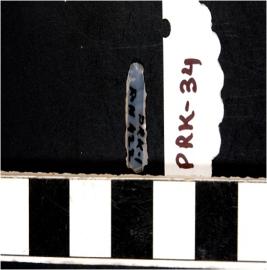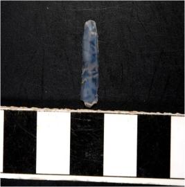 | Description / विवरण | A chalcedony blade with double ridge on dorsal side and bulb on ventral side, trapezoid cross section and sharp cutting edges. |