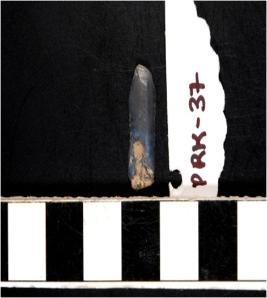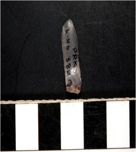 | Description / विवरण | A chalcedony blade with double ridge on dorsal side and bulb on ventral side, trapezoid cross section and sharp cutting edges. |
