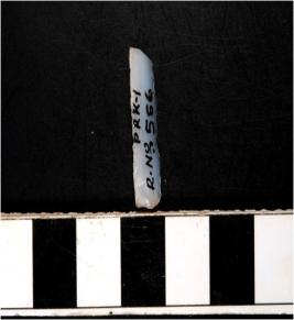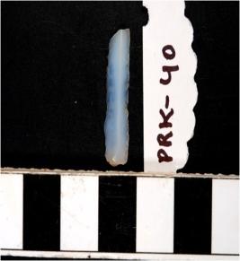| Description / विवरण | A chalcedony blade with single ridge on dorsal side and bulb on ventral side, triangular cross section and sharp cutting edges. |