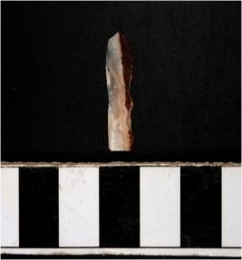 | Description / विवरण | A blade microlithic tool having flat edge on one side with steep retouching on backed ridge bulb on the ventral side. |