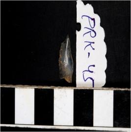 | Description / विवरण | A point microlithic tool made on blade having ridge on dorsal side showing retouching on back and side. |