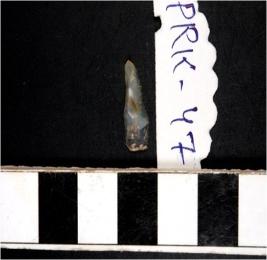 | Description / विवरण | A burin microlithic tool having sharp end with fine retouching on the dorsal sides and bulb of repurcussion on ventral side. |